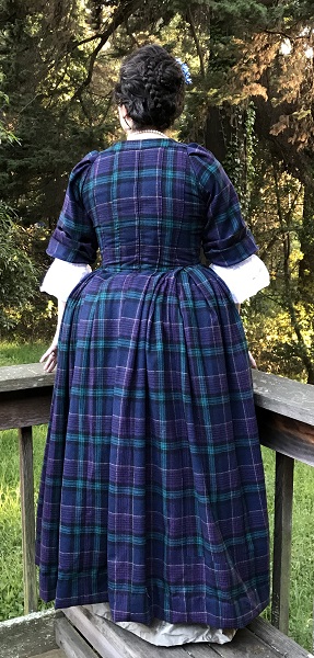 This wool plaid 1740s dress over silk petticoat and stomacher was made for a Greater Bay Area Costumers Guild (GBACG)
