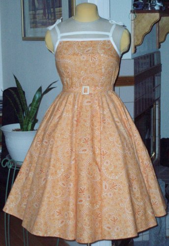 1957 peach halter dress is a cute summer dress for swing dancing especially with a couple of