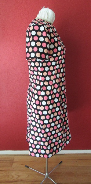 Black with pink and white polka dots cotton dress lined with black polyester cotton has