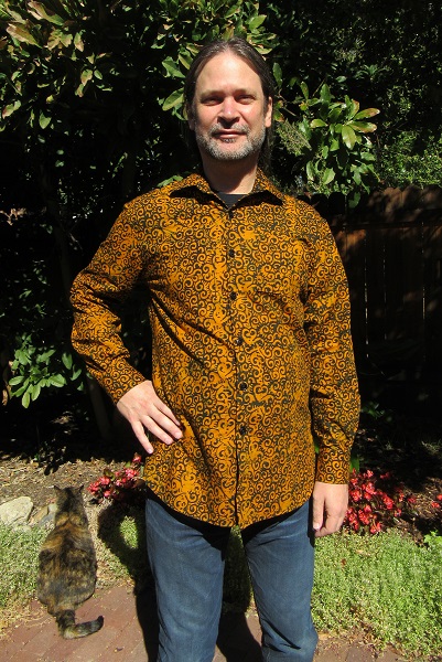 Men's long sleeved tailored shirt using patterned fabric from Tanzania and Vogue V9220 shirt pattern. Vogue patterns often have more pattern pieces and are more complex. Vogue patterns can be a pain in the butt to sew like this one. However, this pattern sews up into a very tailored looking shirt with modern features with the bonus of being able to choose your own fun fabric instead of the boring solids, plaids, and stripes that are the staples of retail men's business, dress, and casual long-sleeved shirts.