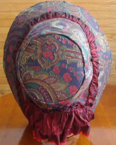Paisley cotton print over heavy interfacing and wire bonnet.