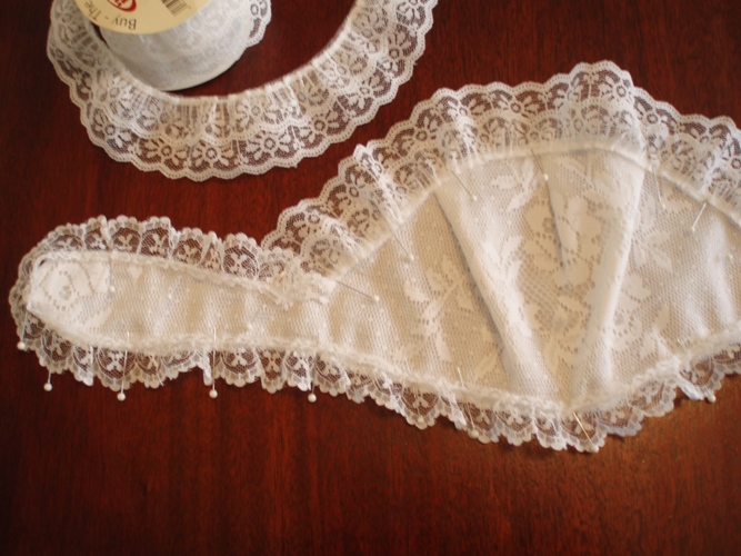 may find it easier to pin the lace on while the cap is on a styrofoam head or some