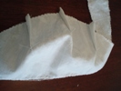 Near or along these fold lines, make 2.5" long x 1"-1.5" wide darts on the back and back sides.
