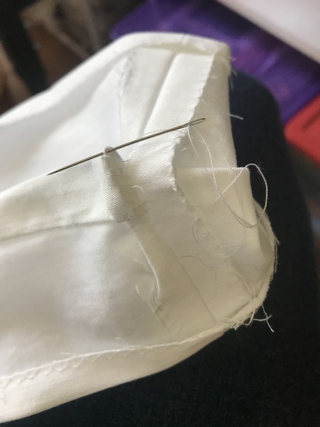 - Fold or iron the the top of the seam twice to make a narrow hem (near the middle mark).